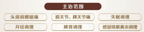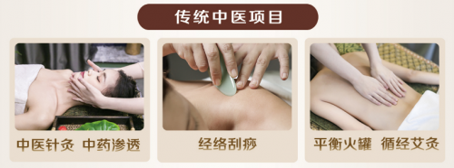 传统中医项目:中医针灸、中药渗透、经络刮痧、平衡火罐、循经艾灸;主治范围:因经络不通、筋骨损伤、肌肉劳损而引起的各种急慢性软组织痛。